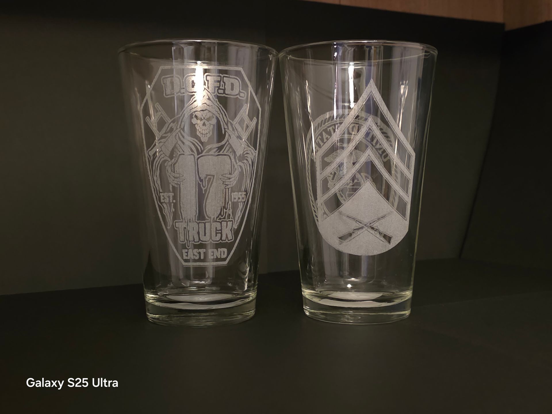 Our personalized pint glasses are expertly laser engraved to create a crisp, permanent design that will never fade or wash away. Perfect for home bars, gifts, special events, or promotional use, each glass is customized with precision to deliver a clean, high-quality finish. Available with a variety of design options to suit any style or occasion.