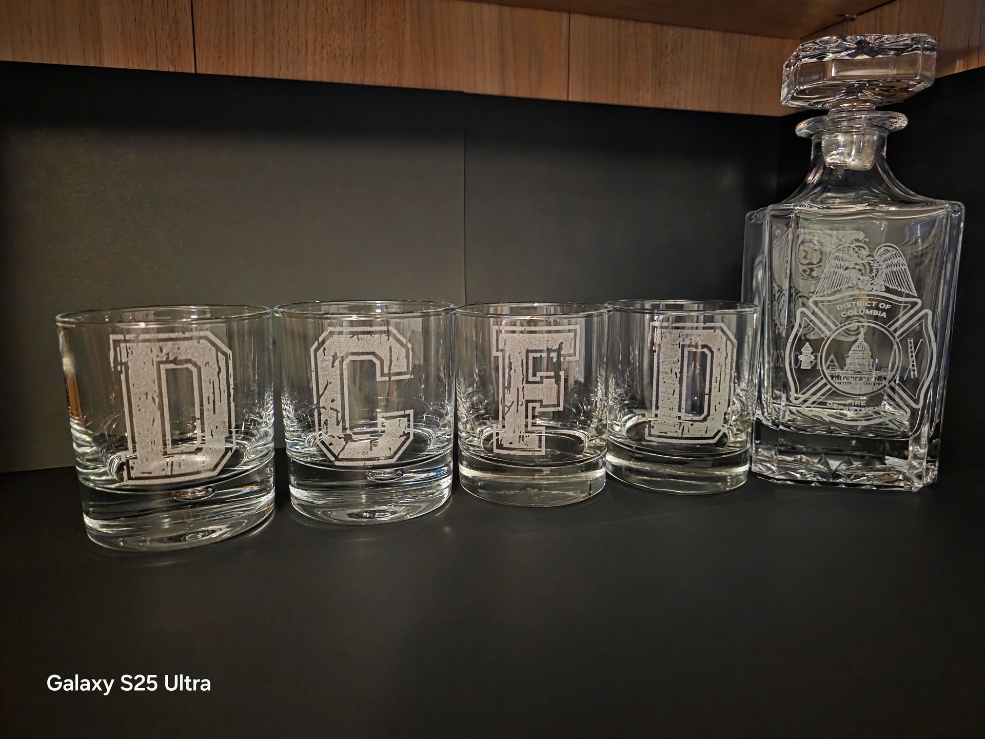 Elevate your bar with a premium personalized decanter set, expertly laser engraved for a timeless, permanent finish. Choose from round or square whiskey glasses, available in sets of two or four, to create a set that fits your style. Perfect for gifts, celebrations, or personal collections, each piece is engraved with precision to deliver a refined, high-end look.